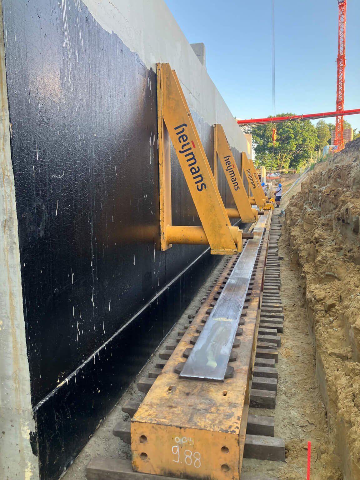 Een bijzonder kritieke fase in het project was het inschuiven van het tunneldeel onder de spoorlijn. Voor deze operatie legde Infrabel het treinverkeer tijdelijk volledig stil. Vanaf vrijdag 22 uur werd de spoorlijn buiten dienst gesteld en de spanning van de bovenleiding gehaald. Vanaf dat moment werkten de aannemer en de spoortechniekers 54 uur en 30 minuten onafgebroken om de tunnel op zijn plaats te schuiven en de spoorinfrastructuur opnieuw op te bouwen. Omdat deze operatie technisch complex en tijdskritisch was, was ook onze veiligheidscoördinator tijdens de nacht aanwezig op de werf om de veiligheid van alle betrokken werknemers te bewaken. Op maandag om 4.30 uur kon het treinverkeer opnieuw opgestart worden, precies volgens planning.